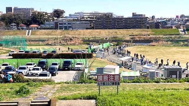 こんにちは!気持の良い日です。丸子橋の下、神奈川サイドに広がるアウトドアの総合ゴルフ練習場、丸子橋ゴルフです。