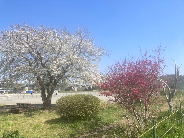 丸子橋ゴルフ練習場お客様専用の駐車場から満開の様子をちょっと眺めた後、ゴルフ練習。楽しい週末を!
