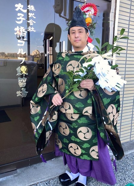 皆様が安全にゴルフ練習をできますように、スタッフがサービスに努められますように、今年も丸子山王日枝神社から山本喜道宮司に来社いただいて新年のお祓い、御祈祷をしていただきました。