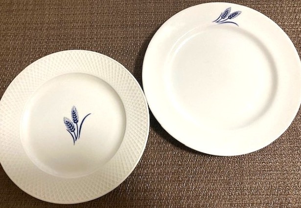 これは購入した高価なお皿、ではありません。いまから10年以上も前になるかと思いますが近所のパン屋さんでスタンプが貯まったときにいただいたパン皿です。小麦の絵がさりげなく描かれているのがいい。朝食気分が上がります。